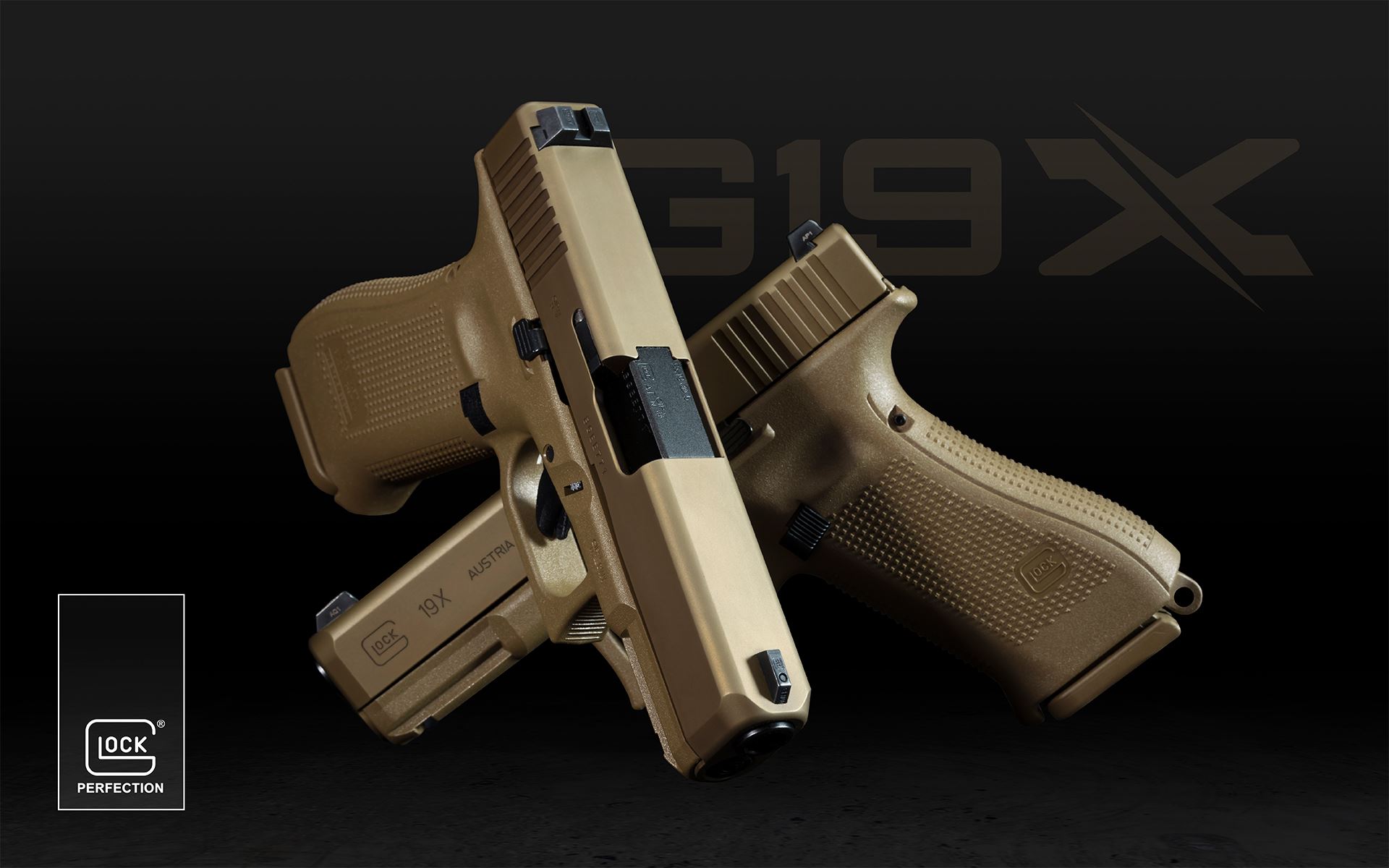 A G19X vem na cor coiote, sendo o primeiro ferrolho colorido de fábrica, finalizado com um aprimorado revestimento nPVD para evitar corrosão. Recursos adicionais incluem o Cano Marksman GLOCK (GMB), empunhadura sem relevo de dedo, retém de ferrolho ambidestro e clip para o fiel. Incluído com a pistola vem um carregador padrão de 17 munições, dois carregadores de 17 + 2 munições e um estojo de transporte na cor coiote.