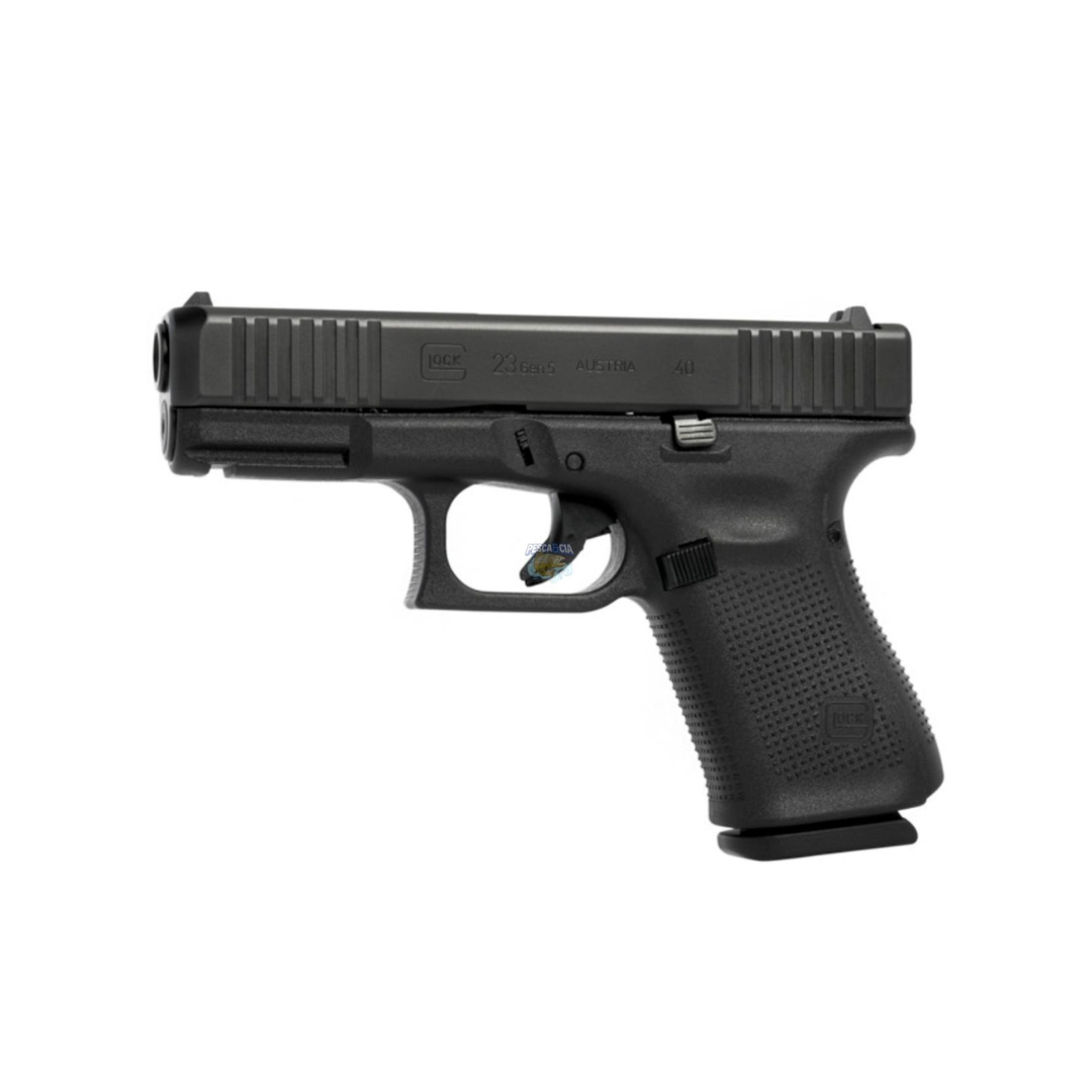 Glock G23 Compacta S&W . A compacta .40 S&W da GLOCK, equivalente à GLOCK 19 Gen5, coloca o poder controlado em um pacote de tamanho ideal – substancial o suficiente para o uso policial, pequeno o suficiente para um porte velado discreto e confortável durante todo o dia. A melhor escolha para profissionais que trabalham à paisana, agora disponível com a tecnologia Gen5.